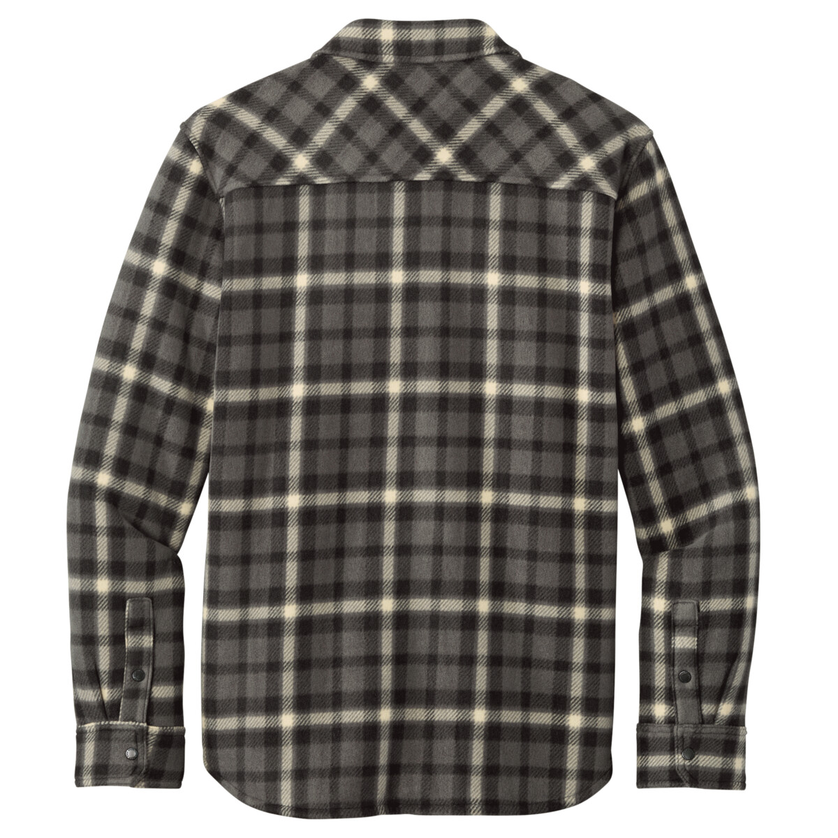 Whether you're spending time inside or outside in cool temps, the high-pile fleece interior of these rugged-looking shirt jacs will keep you warm. Eddie Bauer logo snap-front closure and snap-close chest pockets. Handwarmer pockets. Eddie Bauer woven label at left chest pocket. Made of 10.3-ounce, 100% polyester microfleece bonded with 100% polyester high-pile fleece interior. 100% polyester woven details.