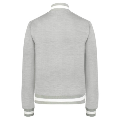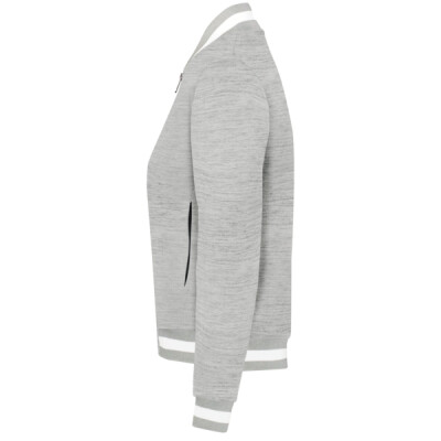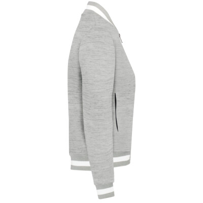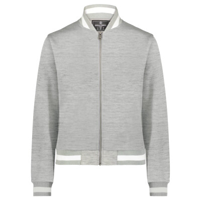 * 100% polyester double-knit * Ladies' fit * Woven label * Front zipper * Set-in sleeves * Front pockets * Dual inside pockets * Striped rib-knit collar, cuffs and bottom band